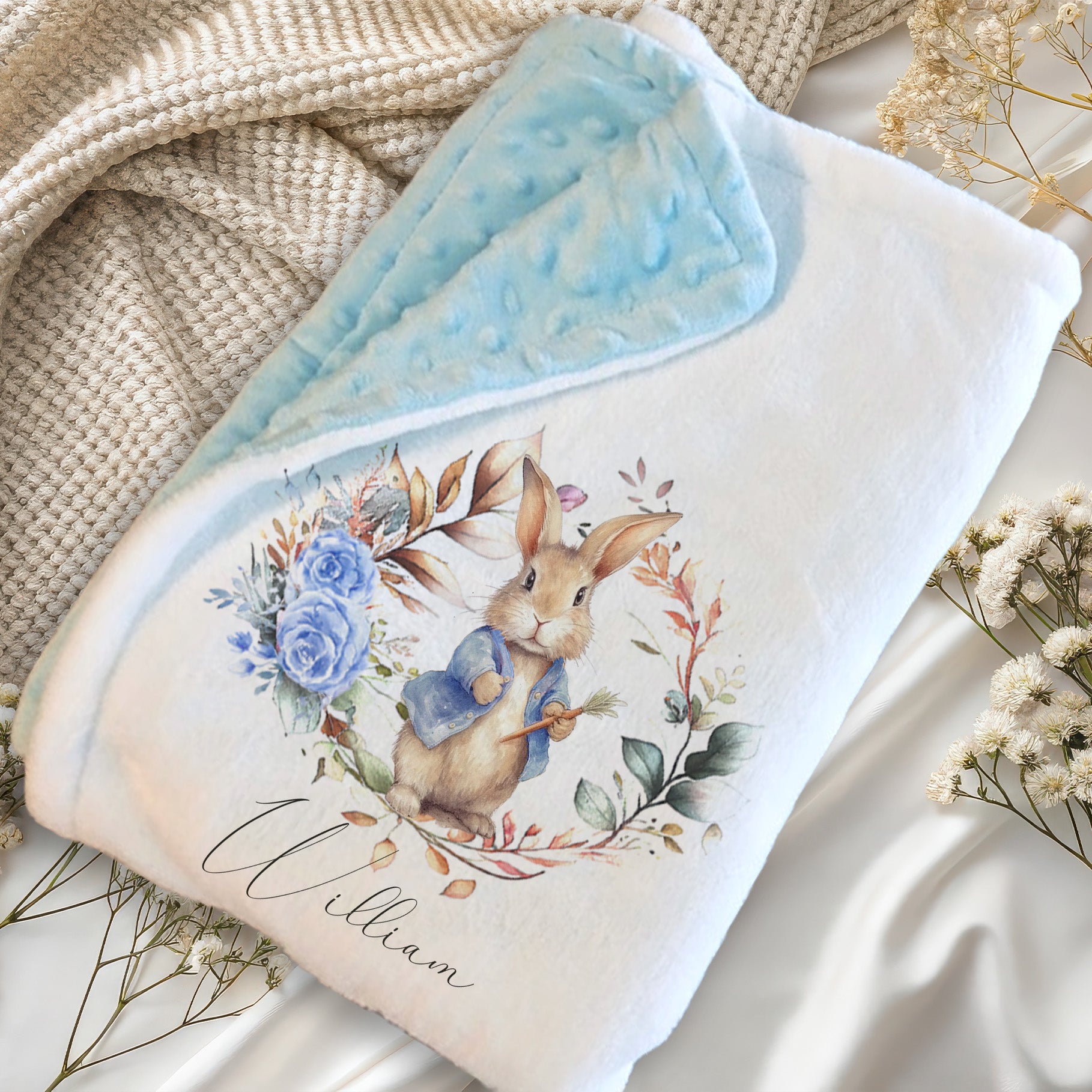 Blue Bunny - Personalised Baby Blanket Gift Set